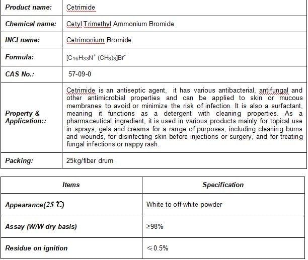 Chemical name:Cetyl Trimethyl Ammonium Bromide