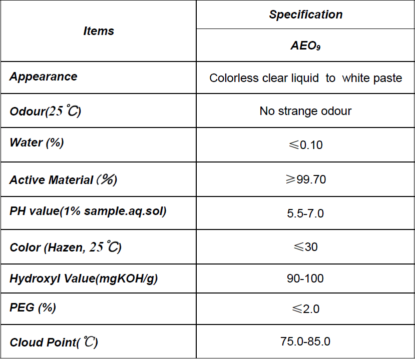 Chemical name: Lauryl Alcohol Ethoxylate with 9 moles/C12-14 fatty alcohol ethoxylate with 9 moles